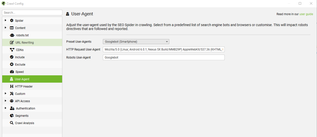 Per diagnosticare la causa, abbiamo eseguito una scansione con Screaming Frog. Inizialmente, la scansione standard non ha rivelato anomalie.